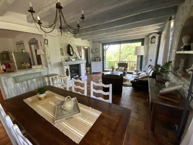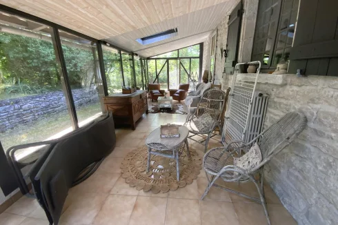Furnished with taste and care, this beautiful home features a vast garden-level entrance hall leading to a spacious, light-filled living room, a separate kitchen, two bedrooms, a shower room and Wc. The veranda, a genuine extension of the living room, provides additional living space all year round. Upstairs, there are two bedrooms, a bathroom with shower and toilet, and a room that could be converted to suit your needs (study, bedroom, etc.). Two small outbuildings complete the charm of the property: one offers a cosy, shady summer lounge, while the other could be used as an independent workshop. Built on a magnificent 2,500 m² plot planted with trees, this property offers a peaceful living environment in the immediate vicinity of all amenities.