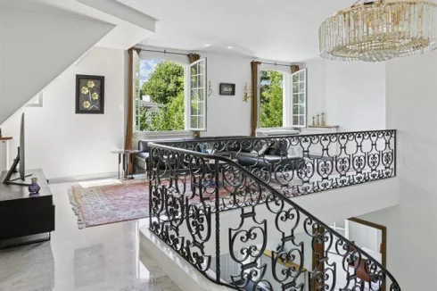 Upstairs: a second master suite, seven other bedrooms, balconies with garden views.