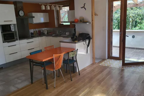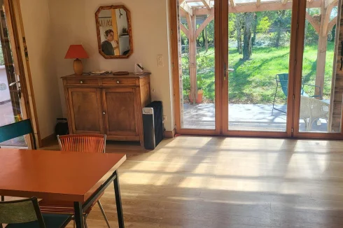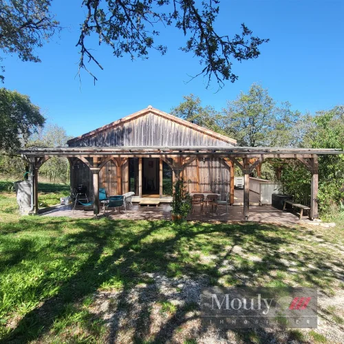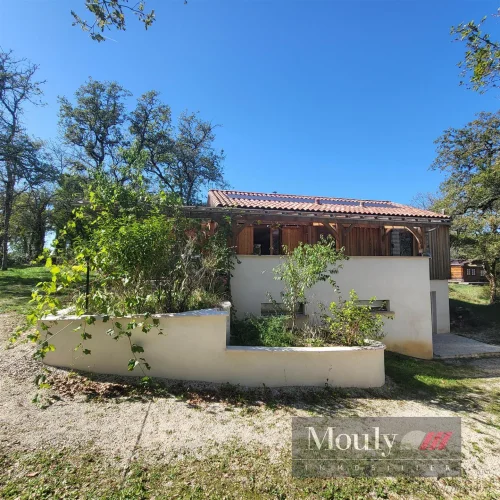 Beautiful timber-framed house (Douglas) with 1 hectare of land, located a few minutes from the village of Vers at the end of a path. On the ground floor, an open-plan, fully equipped kitchen leads to the living/dining room with parquet flooring, followed by a small room that could be used as a bedroom. A bathroom with a walk-in shower, a toilet, a bedroom, and a laundry room. In the basement, a bedroom that can be used as an office and a garage/workshop that can be modified to enlarge the bedroom. The house is very well insulated, double glazed. Heating by electric radiators and a wood-burning stove. Solar panels on the roof of the house. On the ground, 2 small hangars, one of which is used for storing cars. 1 small chalet of 20m2 for storage or to be fitted out Water reserve Septic tank up to standard. Property tax: 950?