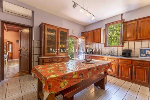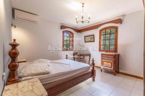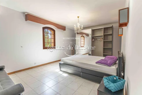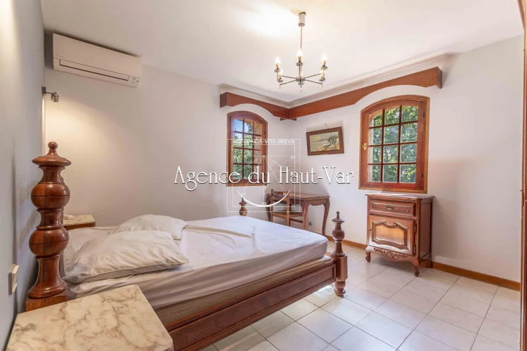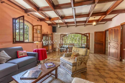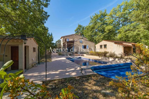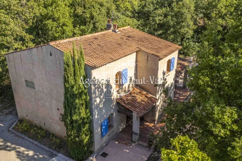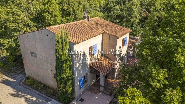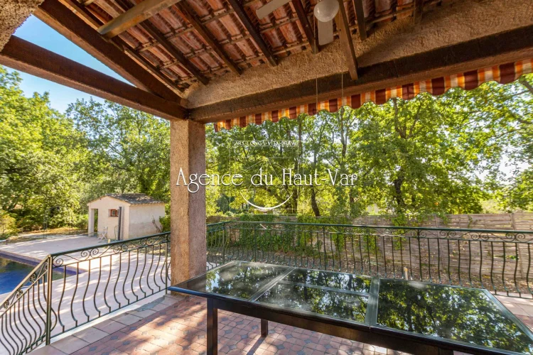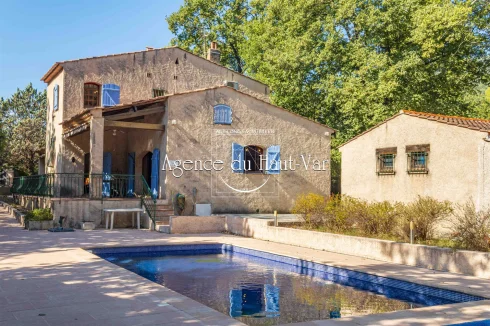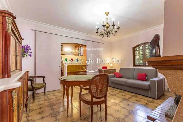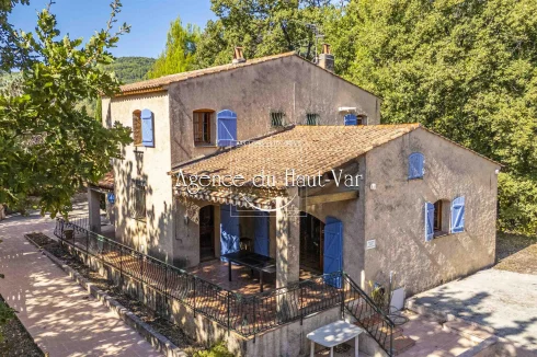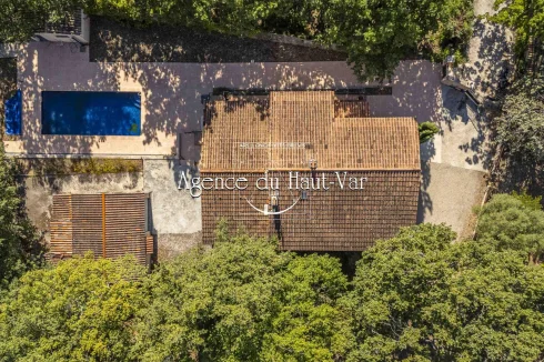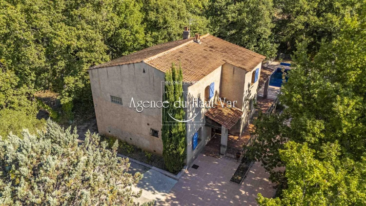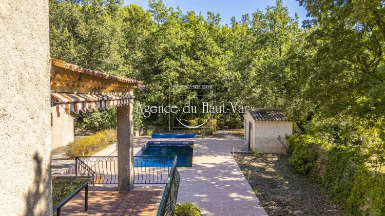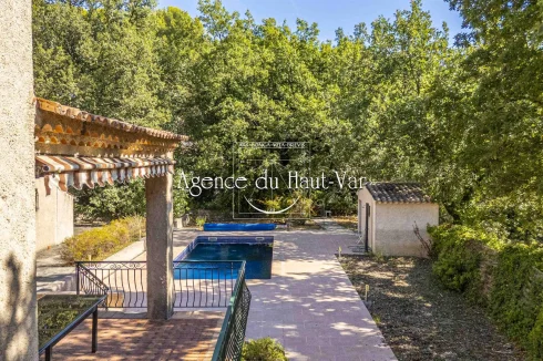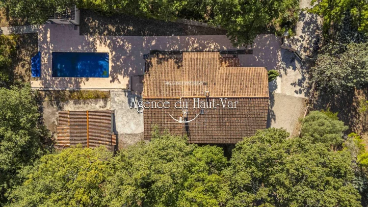 Sole Agent Mandate. In Seillans, tucked away at the end of a cul-de-sac and bordering the forest, this villa offers a privileged living environment on a 1,320 m2 enclosed plot, bordered by a stream that flows all year round.