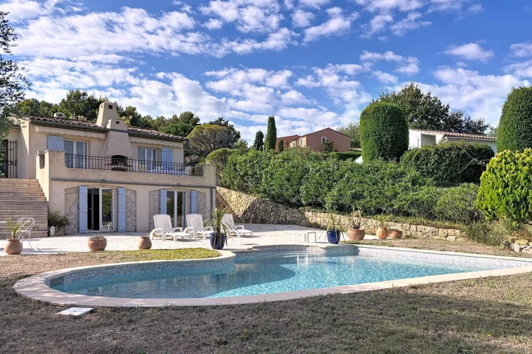 Beautiful flat, wooded plot of 2100m². Numerous outdoor spaces and terraces around the house to enjoy the garden and the pool. The garden offers a clear view.