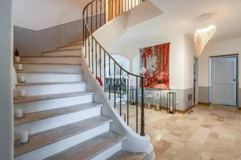 Once you pass through the beautiful gate, you will discover the garden of over 2000 sqm, enclosed and carefully maintained, planted with trees and flowers, with its well-separated pool area, an intimate terrace for sheltered outdoor meals, and its terraced oaks offering a pleasant and shaded green setting to this property.