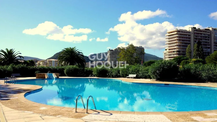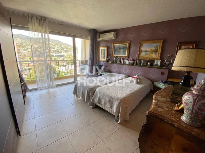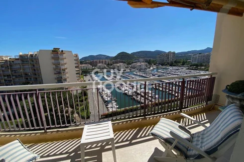 In Mandelieu la Napoule, in a residence with caretaker and swimming pool, in absolute calm, on a high floor with a nice view of the Marina, apartment of nearly 110 m2 with 2 terraces.