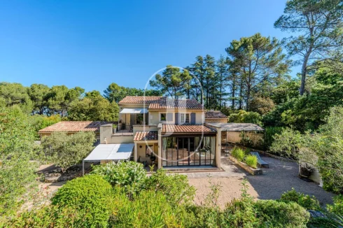 The property, covering nearly 3,000 m², is a true haven of peace, arranged on four levels of terraced landscaping, offering a richly landscaped garden. On the upper level is a heated swimming pool measuring 16 x 4 meters, equipped with a rolling cover. An independent guest room, nestled in a small annex with its own shower room and toilet, perfects this outdoor space.