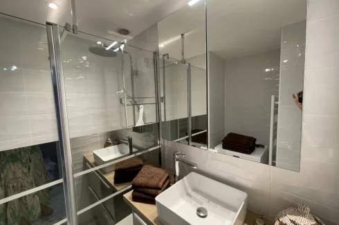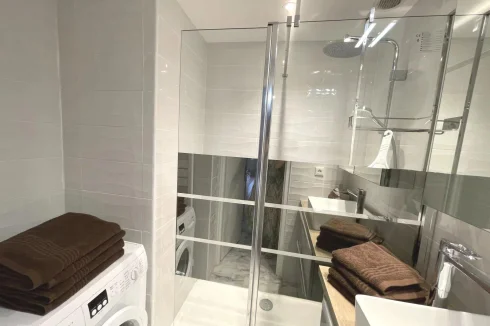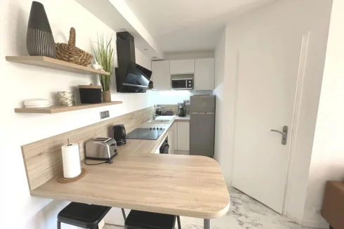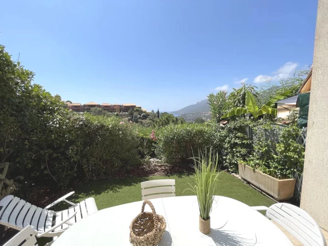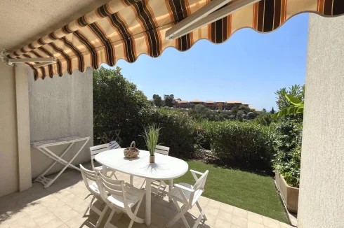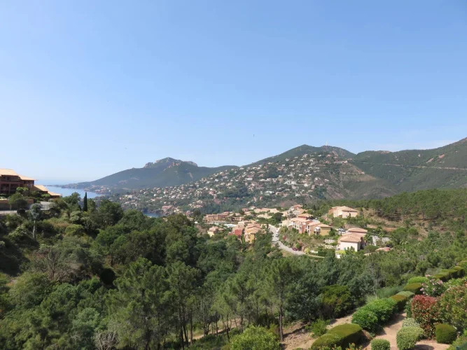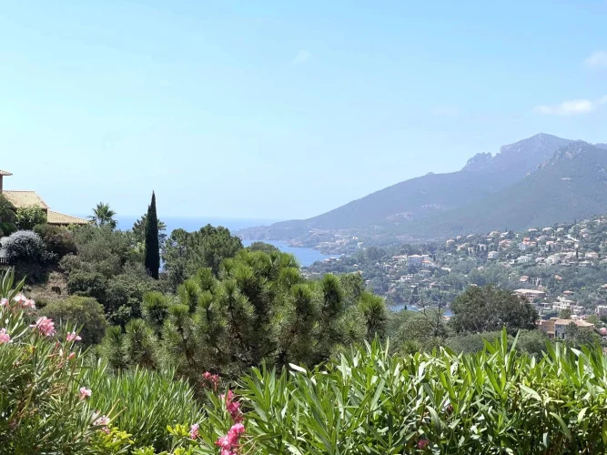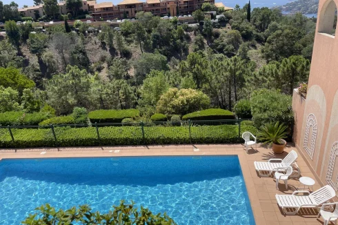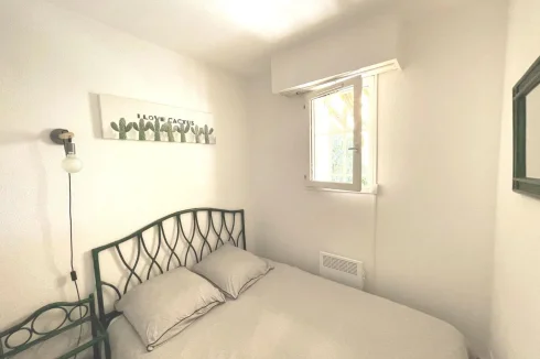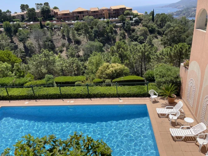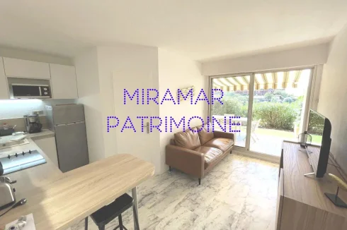 In a quiet, secure residence, beautiful 2-room apartment with sea view. It has an entrance hall, a fully equipped kitchen with dishwasher, a shower room with washing machine, separate toilet, one bedroom with electric shutters and storage space. Terrace with sea view, Estérel and mountains. Swimming pool. Possibility to purchase a garage for an additional €35,000. New reversible air conditioning since. Furniture included.