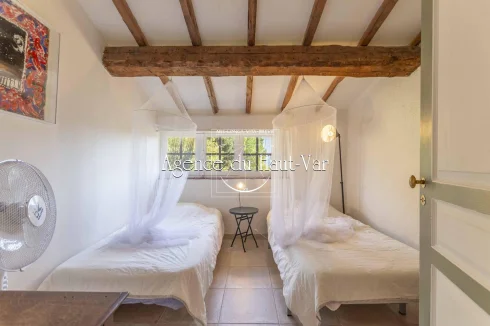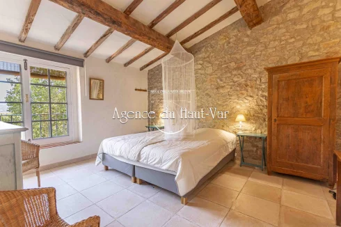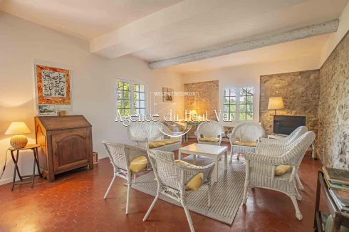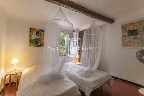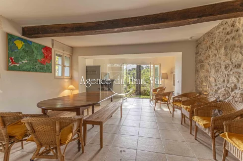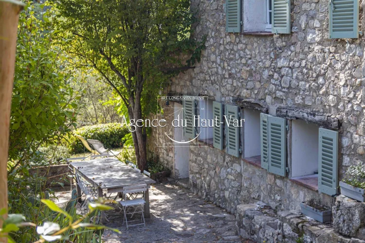 This former silk farm in stone, nestled in the countryside of Fayence, combines authentic charm with tranquility. The house is attached, but its layout and orientation offer almost complete privacy, with no intrusive views.