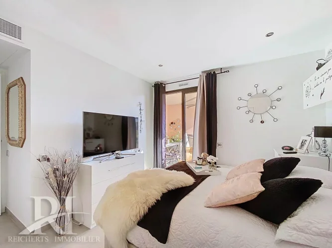 In a superb luxury residence with parkland, two swimming pools, tennis court and caretaker, very attractive Top floor 1 bedroom apartment, 52.10 sqm loi Carrez, extended by a pleasant terrace.