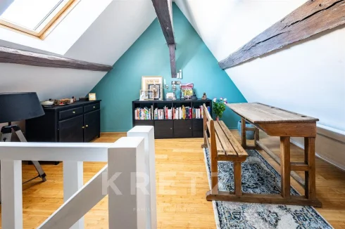 A cellar and private parking complete this duplex, as well as an interior courtyard and a park with century-old trees.