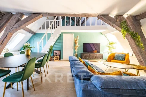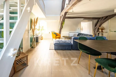 Exclusive. Dijon city center. On the 2nd and top floor of a prestigious 17th-century mansion, this unique duplex apartment measures 115 m² (157 m² floor area) and features two mezzanines.