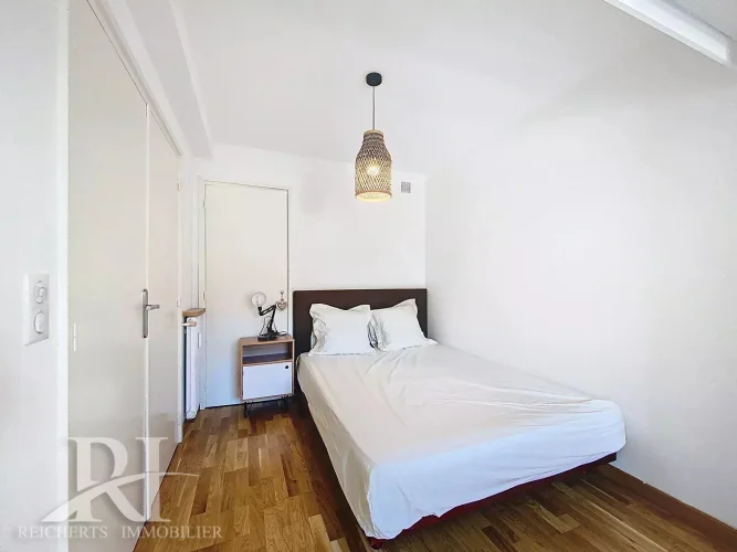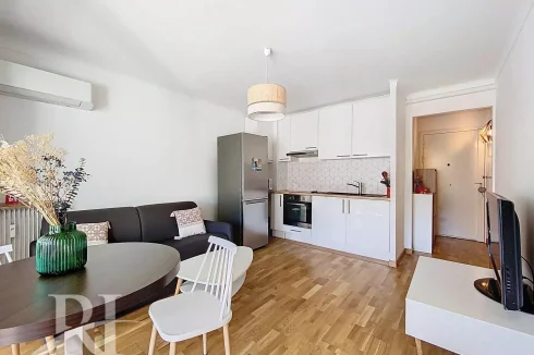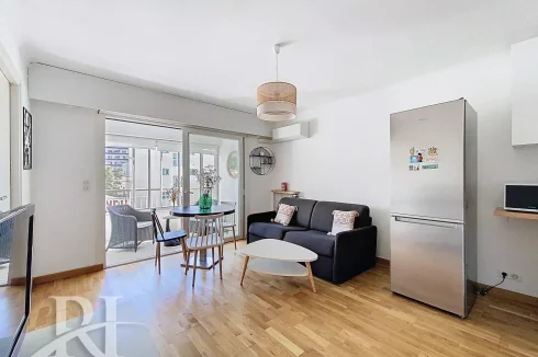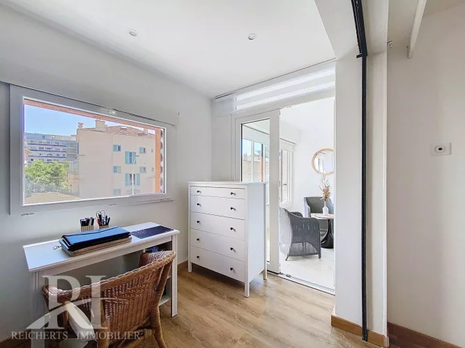 2 minutes' walk from the rue d'Antibes, in a residence with caretaker, 2-room flat with 37 m2 living space (32.11 m2 loi carrez) extended by a 6 m2 terrace/veranda. This property comprises an entrance hall with cupboards, a living room with open-plan kitchen, a sleeping area with study area and dressing room, a shower room and separate toilet.