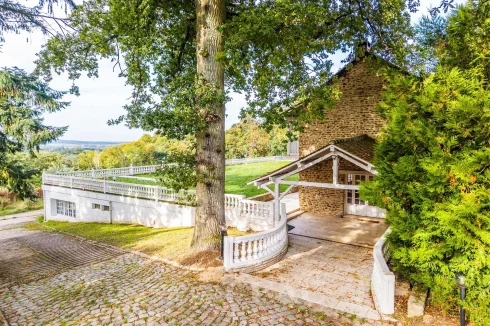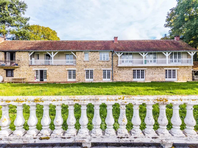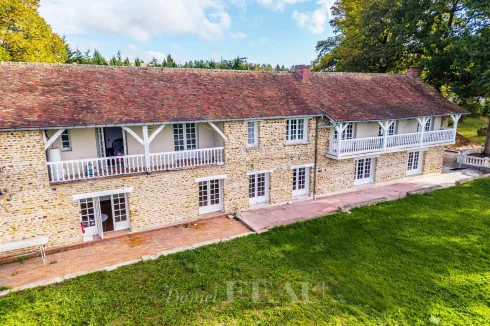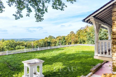 This stone-built property set in over 3 leafy hectares offers great potential for functions. It includes a near 140 sqm reception room with wide patio windows opening onto an over 700 sqm lawned terrace, a kitchen for caterers, and sanitary facilities. The upper floor comprises a near 69 sqm reception room with an insert fireplace, a spacious kitchen, three bedrooms (two with shower rooms, one with a bathroom), and a dressing room.