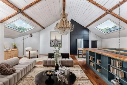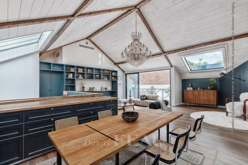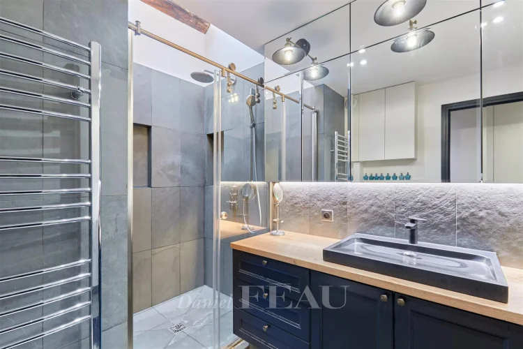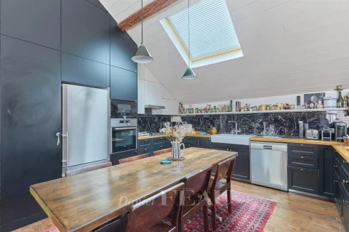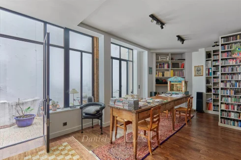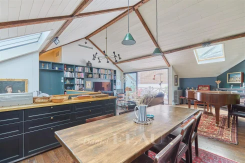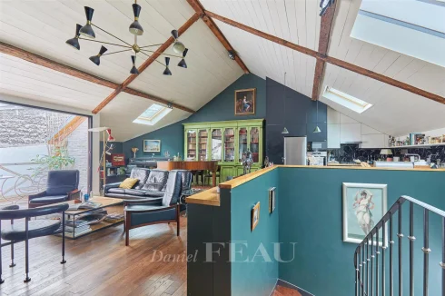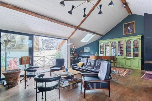 Rue Pierre Fontaine. This split-level former dance studio is located in a peaceful leafy courtyard currently in the process of refacing. Entirely revamped 6 years ago by a renowned architect and in perfect condition, it includes a spacious living/reception room with an open-plan kitchen, a master suite with a dressing room and shower room, and a little terrace. Benefiting from a private courtyard, the lower floor comprises three bedrooms, a home cinema or possible 5th bedroom, and a shower room.