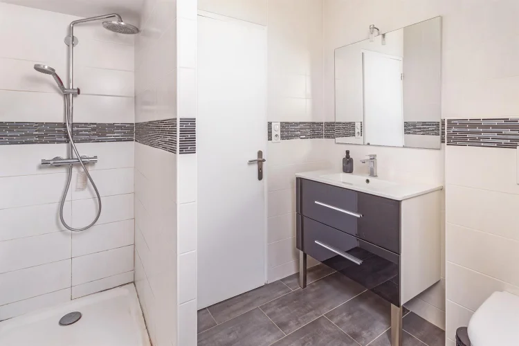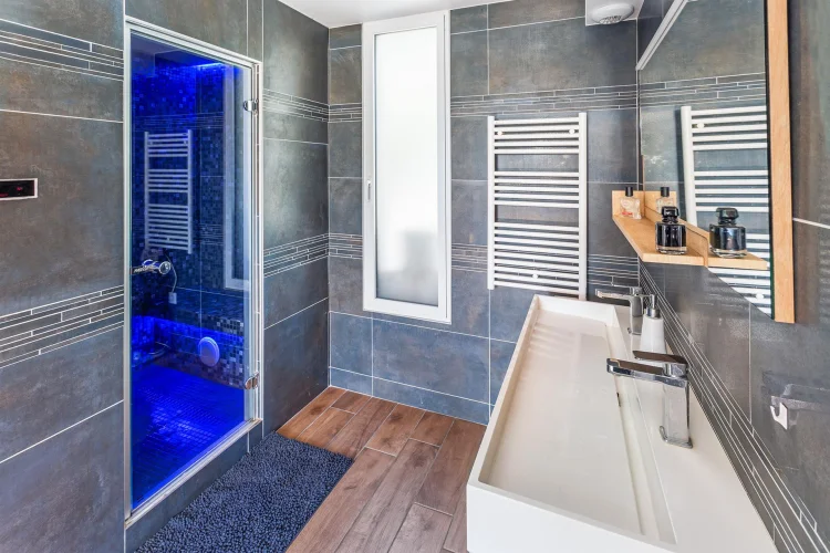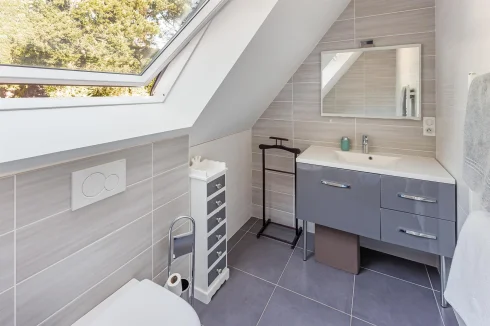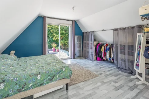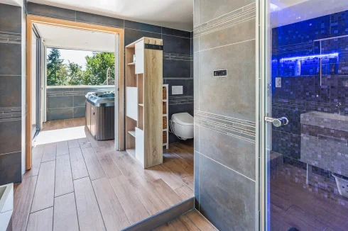Master suite on the ground floor : custom-made dressing room, refined bathroom equipped with a hammam and Japanese sanitary facilities.