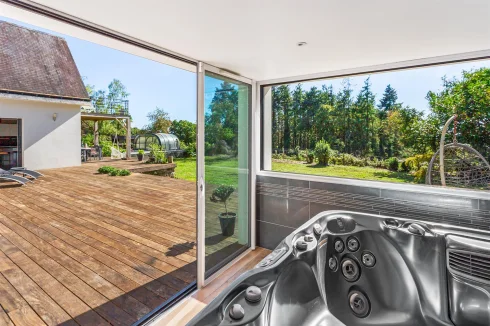 Relaxation area : jacuzzi offering a soothing view of the garden.