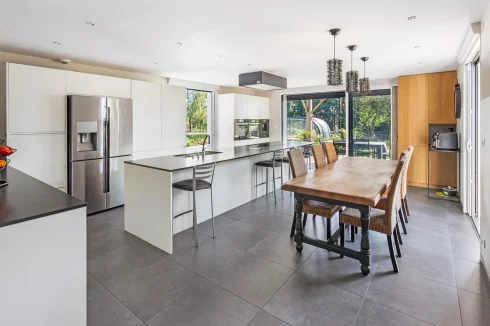Modern kitchen : open, with a clean design, with a user-friendly central island and high-end built-in appliances.