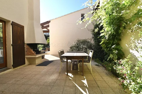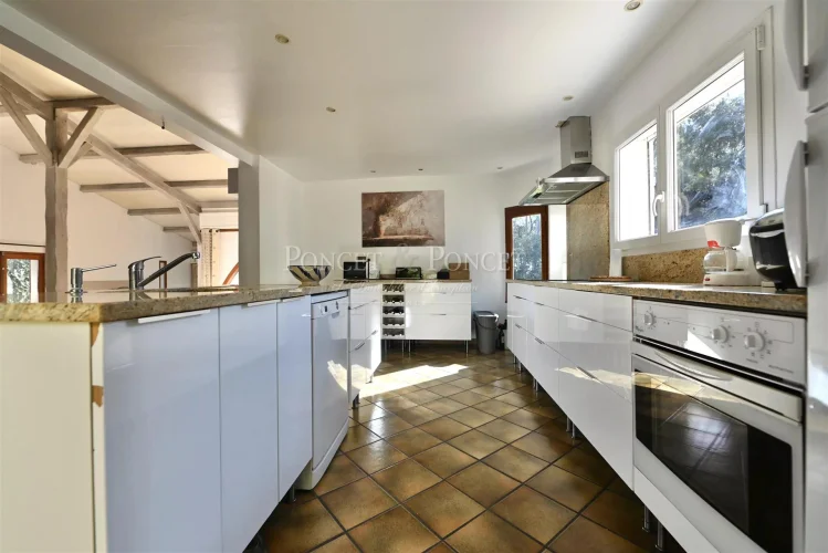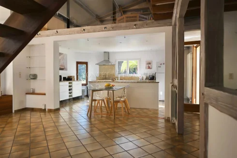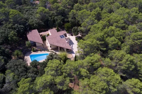 Five minutes north of Montpellier in a green setting, a classic and contemporary architect-designed villa comprising three buildings under a shared roof with a living area of 282m² plus 106m² of outbuildings.