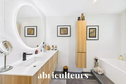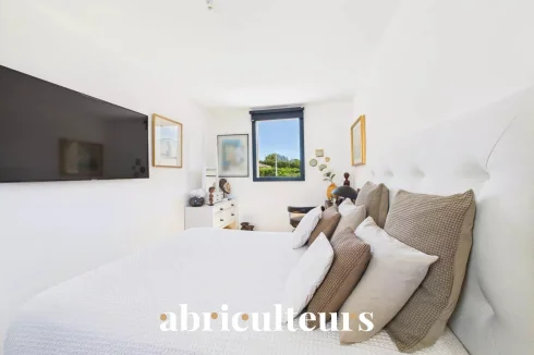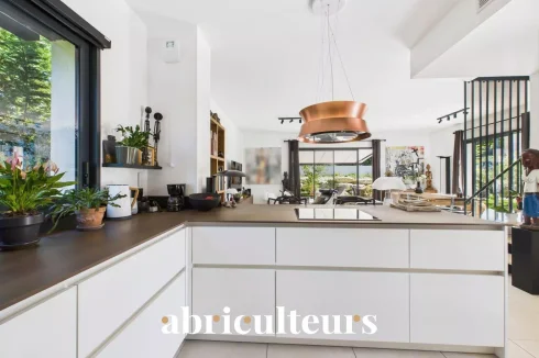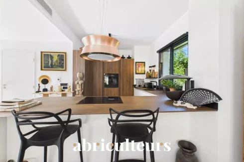 The residence is equipped with cutting-edge amenities that cater to eco-conscious living. Solar panels harness abundant sunlight, reducing energy costs, while the electric shutters and double flow ventilation enhance convenience and climate control. Optical fiber ensures high-speed connectivity, and the intercom system adds an extra layer of security.