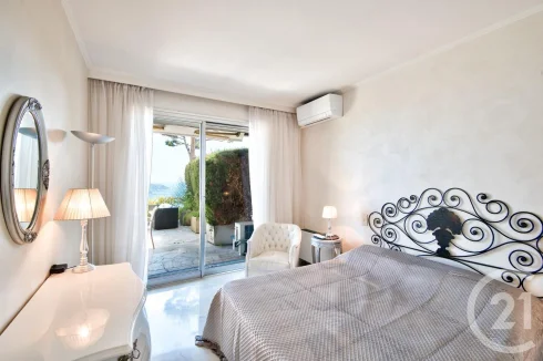 Elegant 3-room apartment for sale with a panoramic view of Villefranche-sur-Mer Bay. Located in a prestigious, secure residence in absolute tranquility, surrounded by landscaped gardens of 6,389 m², this fully renovated and furnished property offers a peaceful and refined living environment. Situated on an elevated garden level and facing east-south, it features a 40 m² terrace that allows you to fully enjoy the exceptional sea view. The apartment includes an entrance hall, a bright living room with a fully equipped open-plan kitchen opening onto the terrace, a master suite with storage, a bathroom and Wc, and a second bedroom with its own shower room and Wc. It also offers air conditioning, central heating, a cellar, and a commun parking within the residence . Ideally located just five minutes by car from the old town of Villefranche, twenty minutes from Monaco, and thirty minutes from Nice airport.