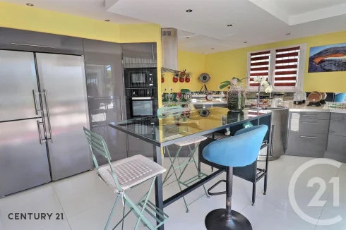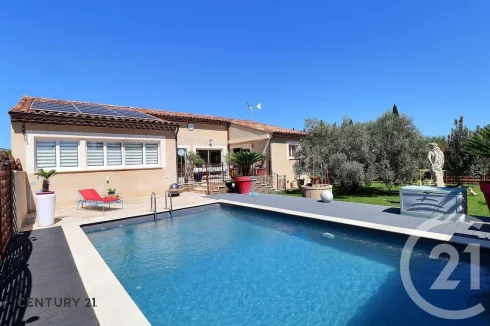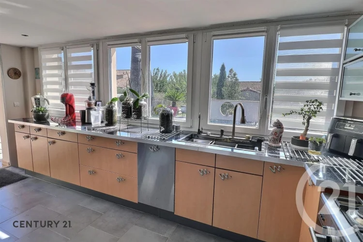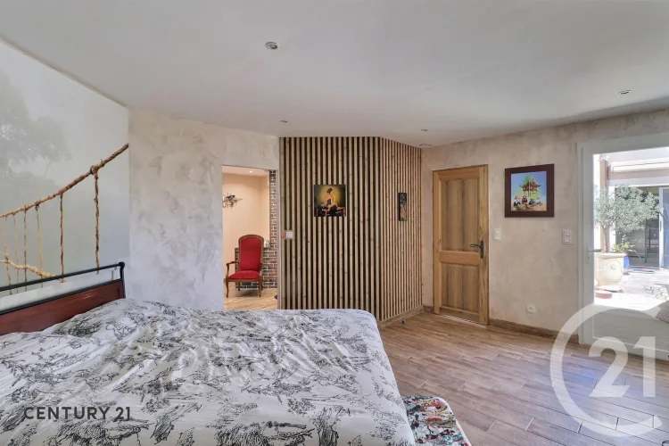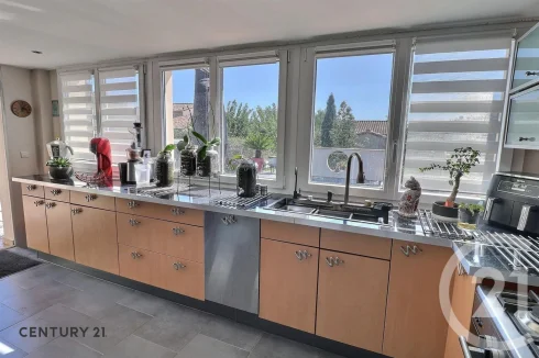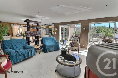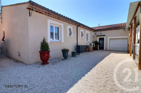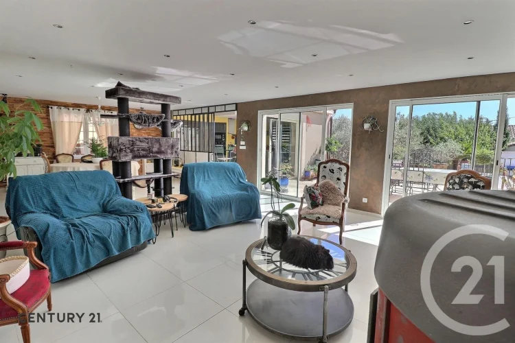 Discover this single-storey house of 200 m² with generous volumes where everything is designed for good living and comfort. In a quality environment 1 km from the village, this beautiful house is turned towards light, and its large sheltered terrace is accessible from the fully equipped main kitchen of 20 m², from the large living room of 60 m², from the master suite of nearly 40 m² and from the fully equipped summer kitchen. Two additional suites of nearly 20 m² complete the capacity of this house. A large office, a large storeroom and a garage, with double gates, of 50 m² overlooked by a mezzanine complete the set. In terms of comfort, the house benefits from everything you would expect from a modern and functional house. The heating method is a reversible ducted air conditioning system, complemented by a wood stove in the living room. In the extension of the terrace, the fully automated swimming pool has beautiful decks that extend this friendly reception and reception area. The plot of land with trees and an automatic watering system is completely enclosed. Photovoltaic panels are installed on the roof generating an average income of 1800 Eur per year. The house is connected to the collective sewerage, has a well, and can be connected to the water of the Carpentras Canal. The list is not exhaustive to describe this perfectly maintained property. Offered exclusively in your Century 21 agency in Carpentras, contact us for any further information! Property offered by Ismaël Lopez Ei, commercial agent (Rsac )