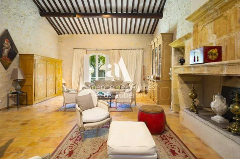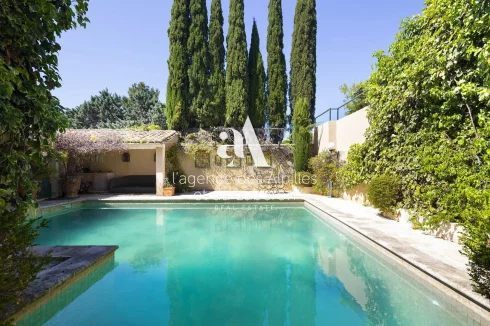 For sale in Maussane-les-Alpilles. Pretty bourgeois stone house with a nice garden with terrace and swimming pool in the heart of the old village. We have spacious living rooms, nice volumes under ceilings and a nice reception capacity with 6 bedrooms: 4 are equipped with private water rooms and the last two sharing a bathroom. Kitchen, dining room, double living room, veranda and over-sized master suite are the remarkable pieces of this elegant and comfortable home. The landscaped garden is neat and chic. The swimming pool with its summer kitchen allow to fully enjoy the sweetness of living Provençal 10 months/12.