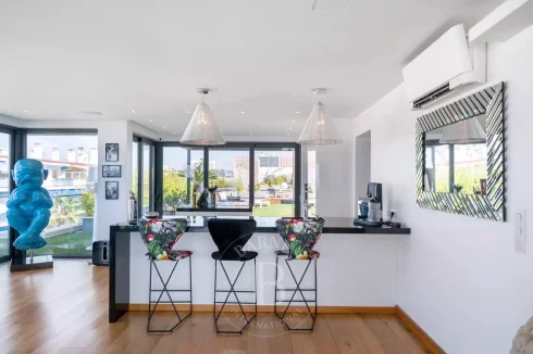 In the heart of Juan-les-Pins and just a few steps from the beaches of Cap d'Antibes, magnificent flat with 350 sqm terrace and sea view.