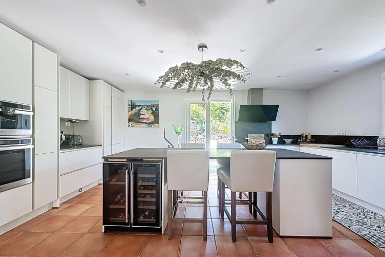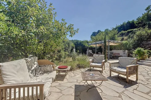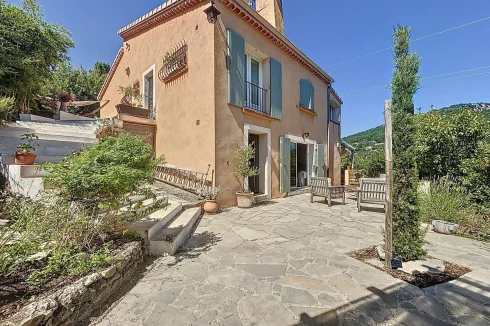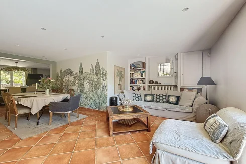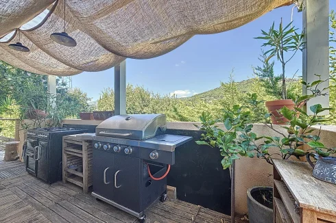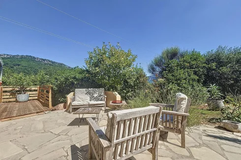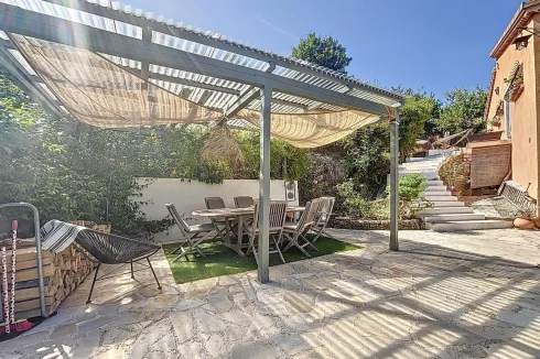 Charming detached house comprising an entrance, a spacious living area with an open kitchen opening onto terraces, a pantry, and a toilet.