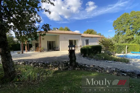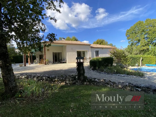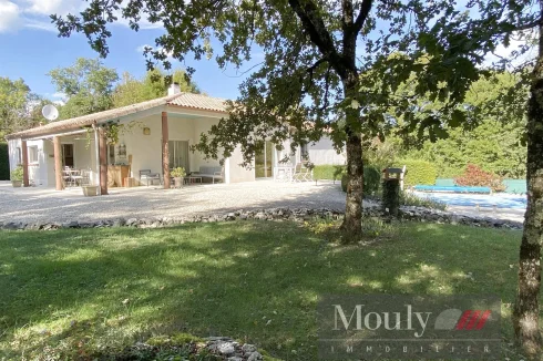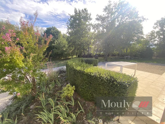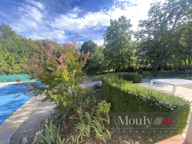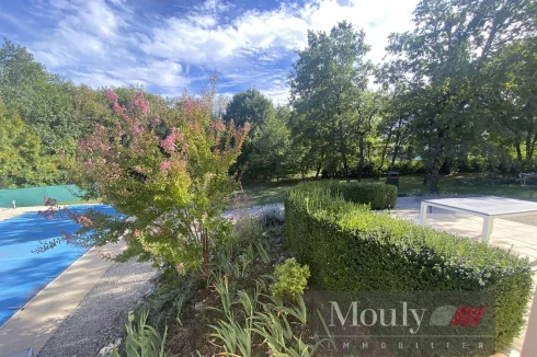 Discover this superb contemporary house with a meticulous design, characterized by a harmonious shape to highlight the volumes while optimizing natural light. Inside, the distribution of the space has been carefully thought out to offer a living environment that is both convivial and intimate. The three large cascading bay windows offer a beautiful perspective on the exterior and bathe the whole with omnipresent light. The living space is open and also organized so that each space benefits from exits to the exterior and under the terraces which embrace both the south and west sides. The night area is intelligently arranged, offering 3 spacious bedrooms, a bathroom and a shower room. A finished basement completes the living space with an additional bedroom/office ideal for working or entertaining, a functional laundry room and a large garage of approximately 30m2. Outside, a garden with oak trees provides a cozy and shady atmosphere, ideal for summer days. Boxwood hedges hide small nooks and crannies, including the wood shed. A wooden shed serves as storage and could also be a perfect playhouse for children. An open terrace overlooks the large swimming pool, perfect for relaxing or entertaining. A camper van shelter. Solar portal. A beautiful balance between modernity, nature and the art of living. In perfect condition.