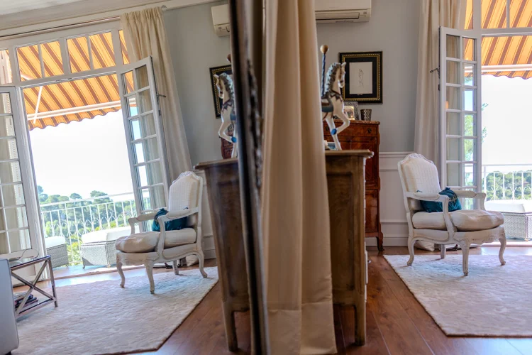 There are two bedrooms (12m² each) and a bathroom. This property comes with private parking, a cellar, and access to all the residence's amenities: a tennis court, one of the largest private swimming pools on the Côte d'Azur with an exceptional sea view, a wooded park, and a pétanque court.