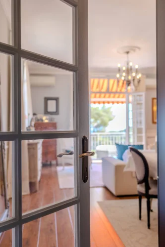 This air-conditioned apartment includes an entrance hall, a beautiful 38m² (38m²) living room with an open-plan kitchen opening onto a south-facing balcony with sea views.