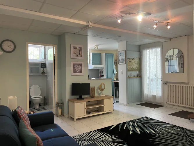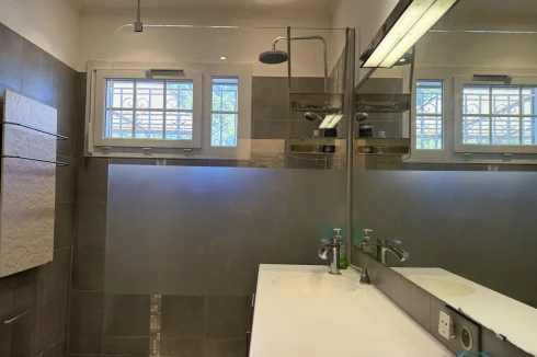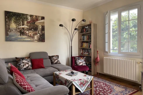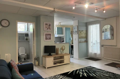 The house consists of two equipped kitchens , two spacious living rooms , a cozy lounge , as well as five comfortable bedrooms and two bathrooms . Each living space has its own access, allowing family and friends to stay independently, while still retaining the possibility of easily bringing everything together into a single, friendly home.
