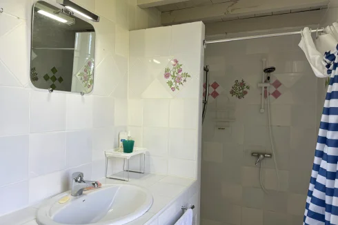 The property is accessed via a private path lined with cypress trees, leading to a covered terrace which introduces the main entrance. The ground floor, with an area of approximately 105m2, consists of a large entrance hall, a bright living room with fireplace and double exposure, as well as a dining room similar to the living room. The kitchen, open to a large living room, as well as an en-suite bedroom with private bathroom add to the functionality of the place.