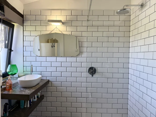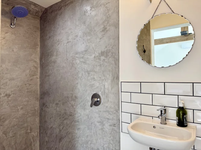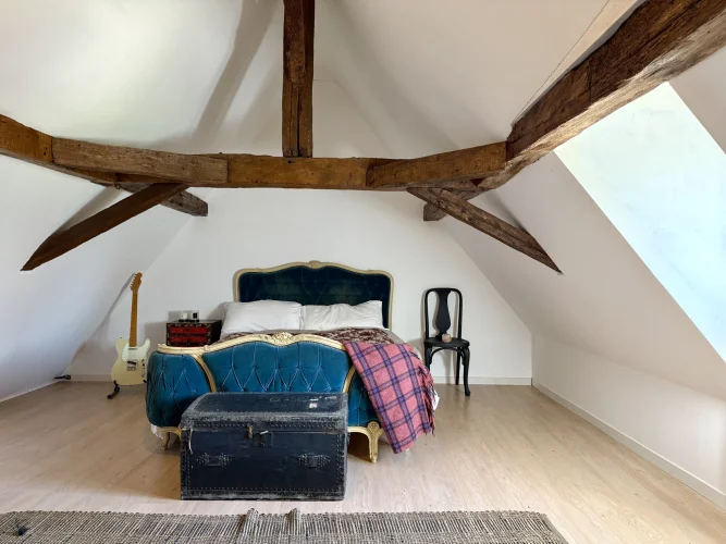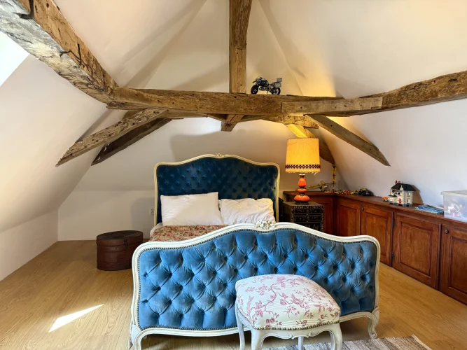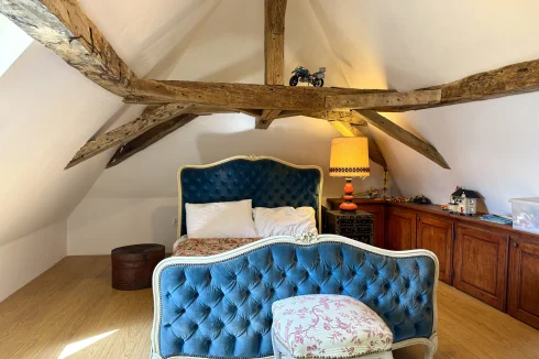 Upstairs, two additional bedrooms and a shower room offer a warm and intimate sleeping area.
