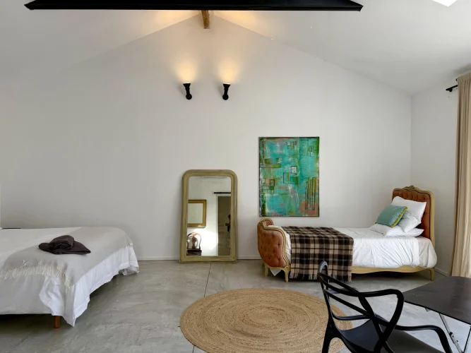 The property also has an annex building comprising four independent studios, all tastefully furnished: polished concrete floor, bedroom, bathroom, and kitchen area. Each studio is equipped with reversible air conditioning, guaranteeing comfort and independence for their occupants.