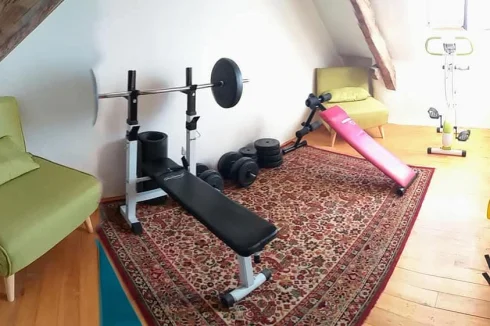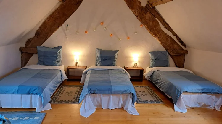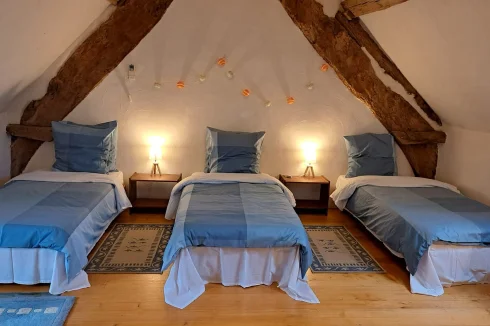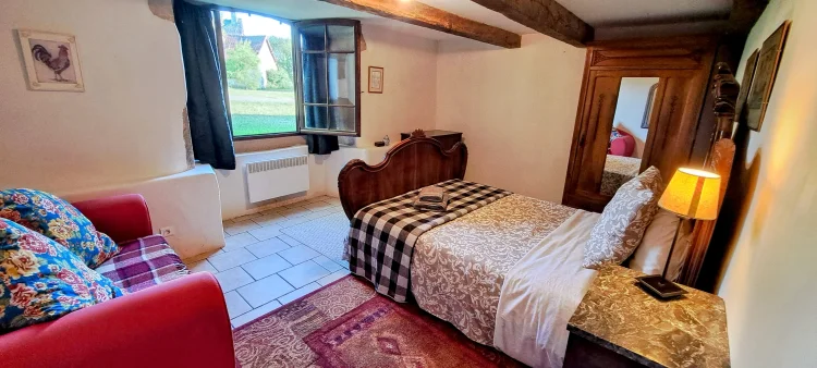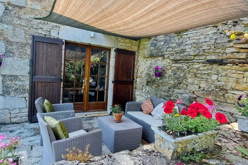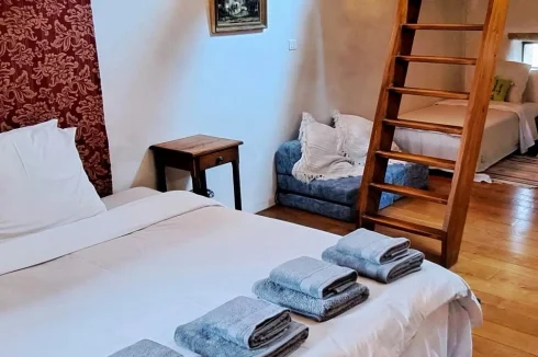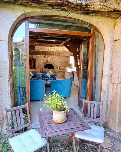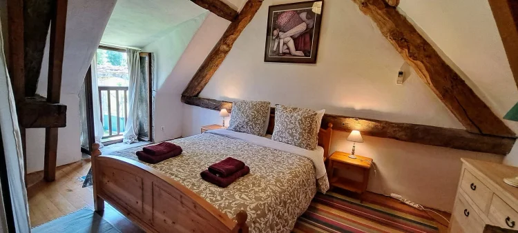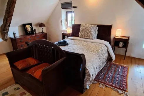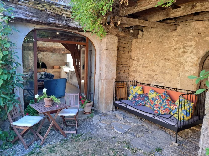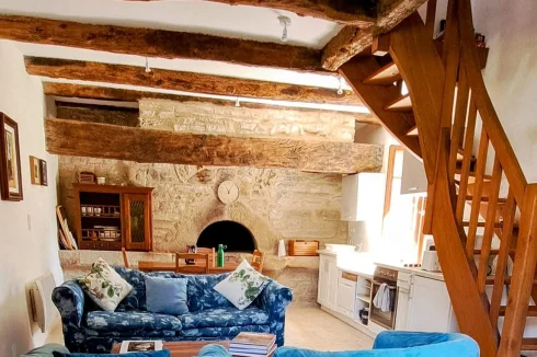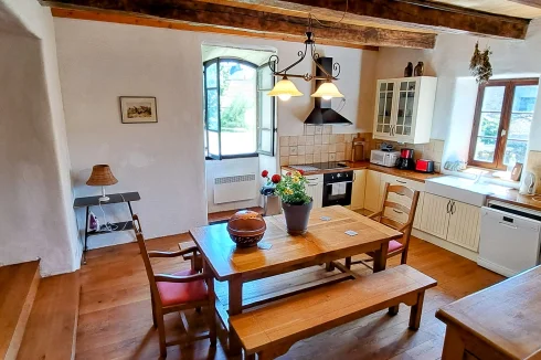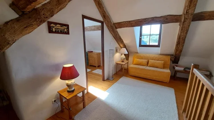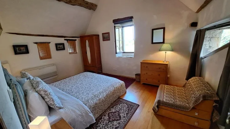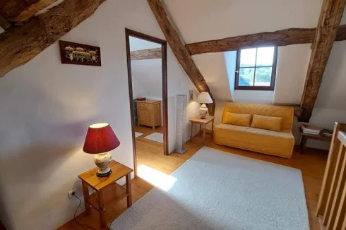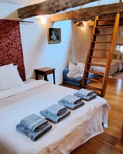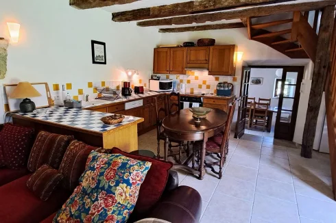 Unit 3 - (52m²) With direct access to the courtyard, there is a kitchen/living room with former bread oven and a bedroom, bathroom on the first floor with a mezzanine as well..