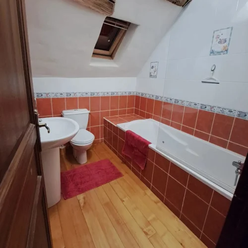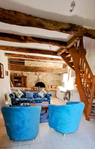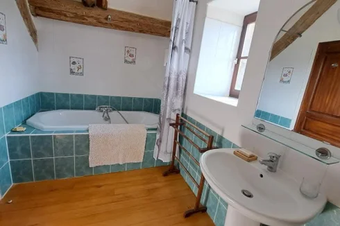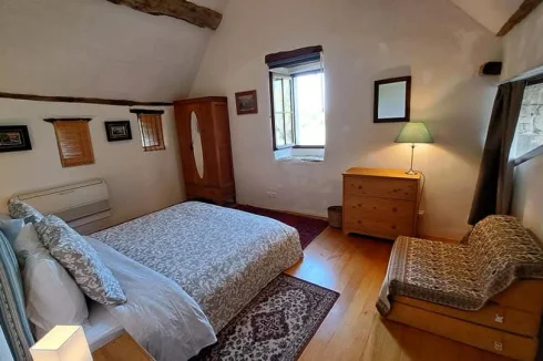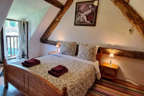 Unit 1 - With access from a large verandah overlooking the central courtyard, this accommodation (120m²) comprises a large fitted kitchen with oak flooring, a living room with wood-burning stove and a small balcony. Upstairs, there is a landing, a bedroom in the former dovecote and a bathroom. The ground floor part is accessed from the entrance hallway via stairs to the former cellars, which include a potential kitchen area, some units have been installed, a bedroom and a shower room. With its access from the ground floor, this could be turned into a self contained unit by finishing the kitchen.