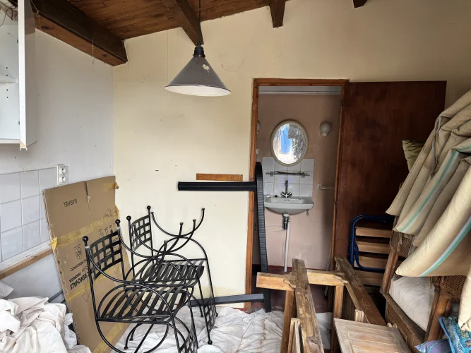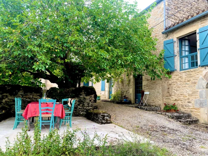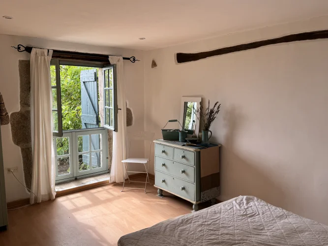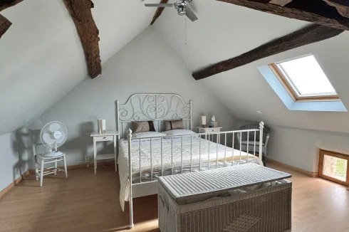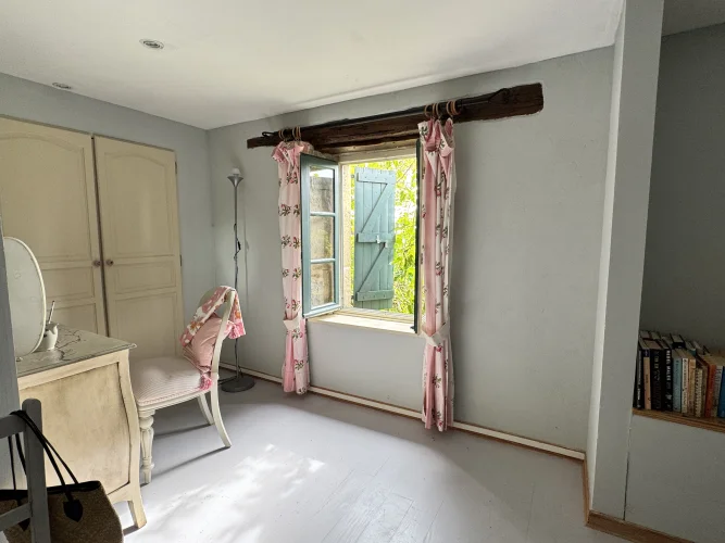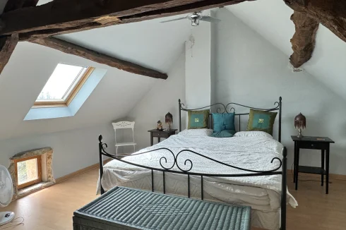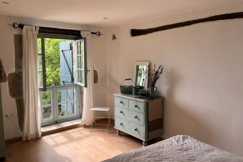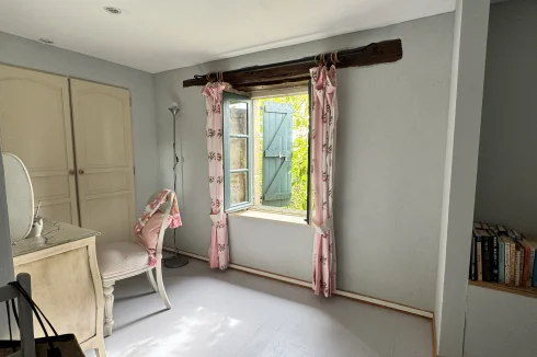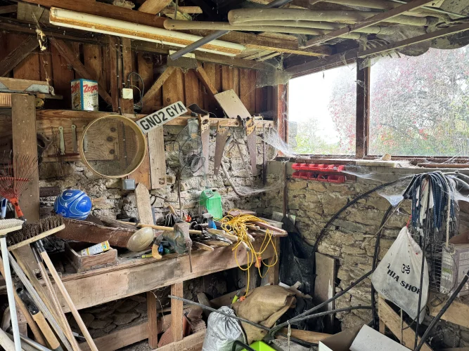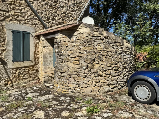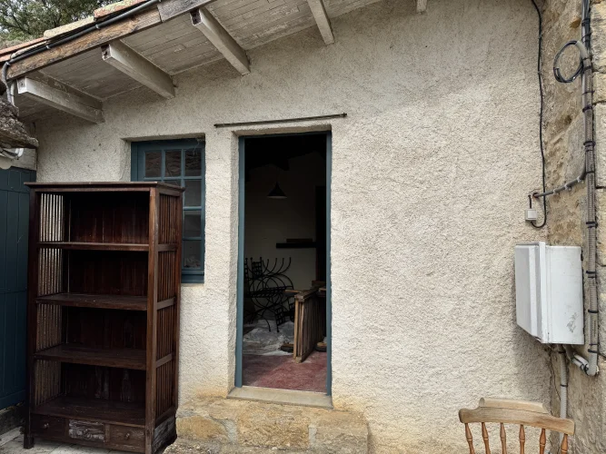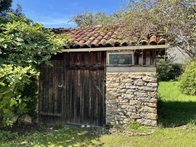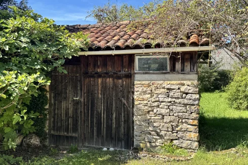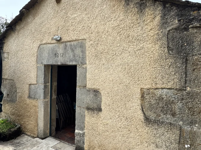 Outside, there is a courtyard in from of the house and well to the side. Former annexe bedroom with shower room (14,8m2) on other end with tiled terrace to the front. Old bread oven and store (13m2) dating from 1869, wooden workshop (11,5m2) with power and light.
