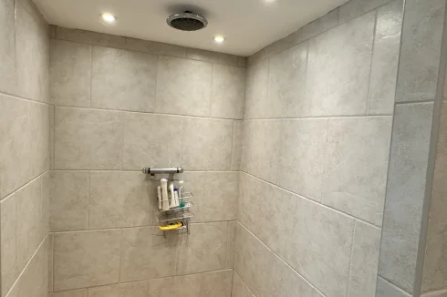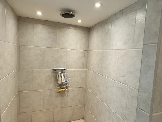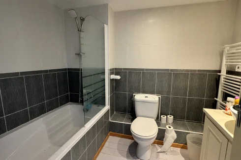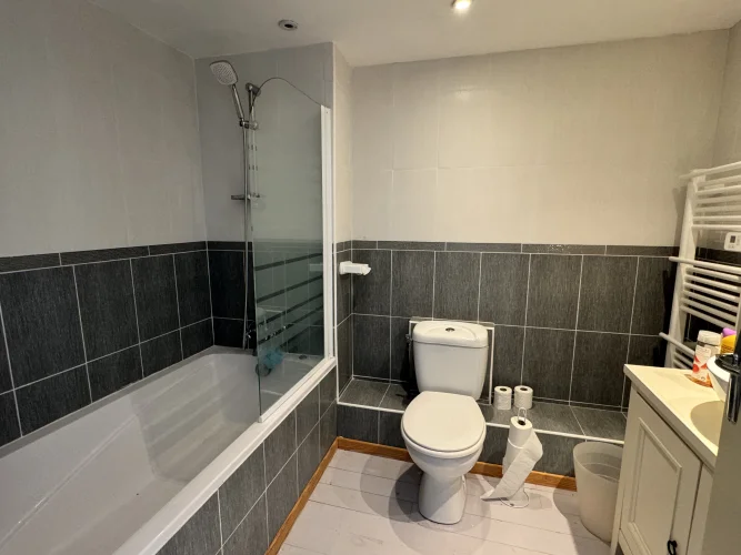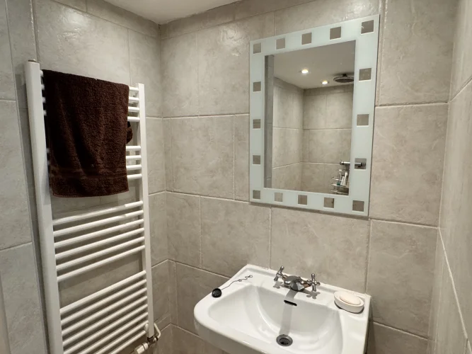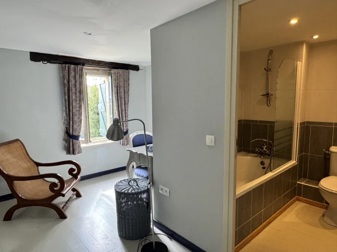 Entrance hall (7m2) Doors to outside and stairs to first floor. Boiler room (9,5m2) With brick floor, Frisquet gas fired boiler, hot water cylinder and shelving. Shower room and cloakroom (5m2) with WC and washbasin and door to shower area with large wet room and wash basin. TV room (13m2) A very useful second sitting room or potential ground floor bedroom.