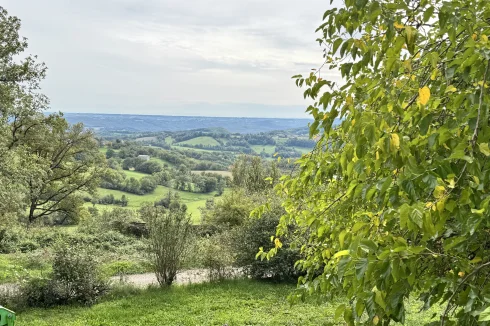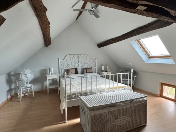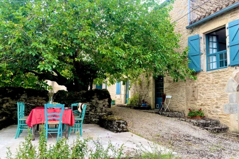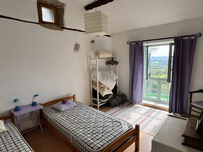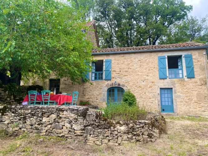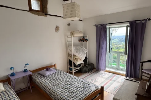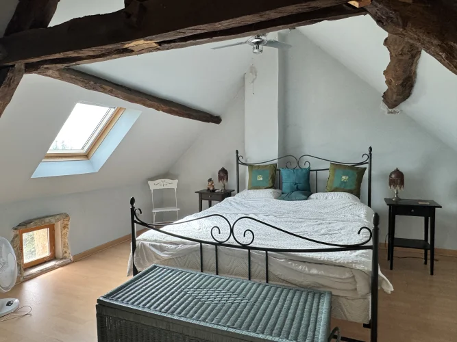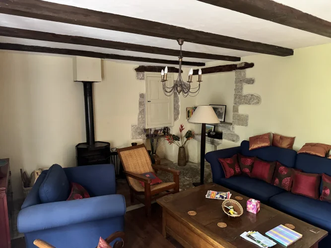 The views over the Seye Valley from this detached stone property (160m2) are fabulous. Formerly two houses, they have been amalgamated to make a four bedroom house with three bathrooms and a wet room on the ground floor and potential to make a ground floor bedroom.
