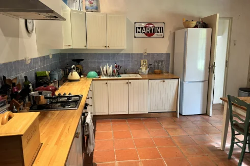 Outside, the old bread oven building and former studio is waiting for refurbishment. There is an 11m x 5m salt water pool which is 3m deep at one end so ideal for diving and has terraces all around and, together with the gardens, borders and mature trees, the whole property is set in 2188m2. Do not forget the lovely views!