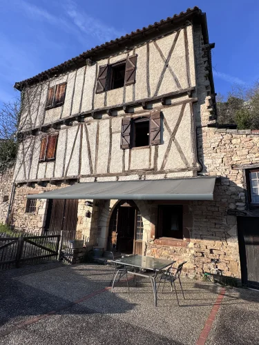 In the village of Cordes sur Ciel but on the outside and is just a short walk from the centre.
