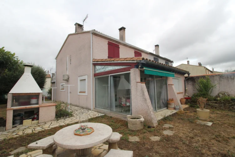 Pieusse Villa, good condition: fitted kitchen, living/dining room, terrace, veranda. Upstairs, 4 bedrooms, large balcony, comfort, air conditioning, modern electric heating, garden, garage, workshop, well. Excellent location